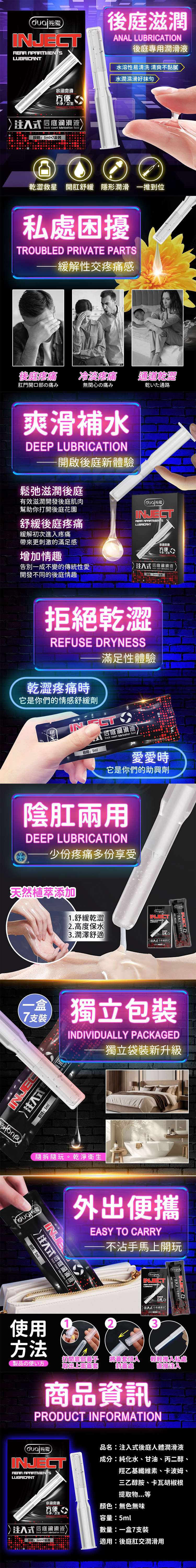 名稱:獨愛|注入式後庭潤滑液 5ml(7支裝)